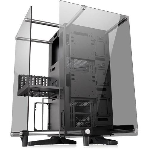 Thermaltake Core P90 Tempered Glass Edition Mid-Tower ChassisThermaltake has kicked open-frame chassis up to a notch and presented the Core P90 Tempered Glass Edition Mid-tower Chassis. The Core P90 TG boasts the case structure split into three compartments for graphic card, PSU and other cooling components. The triangular prism shaped body and two 5mm thick tempered glass side panels turn the Core P90 into a hexagonal prism outlined creature, allowing for an ultimate system display from every angle. Along with its 3-way placement layouts (wall mountable, horizontal laying and vertical standing), 7 drive bays with modular drive trays design and high liquid cooling system expandability, the Core P90 TG permits users upgraded aesthetics and limitless potential with how they want to configure their systems. Tt LCS Certified Tt LCS Certified is a Thermaltake exclusive certification applied to only products that pass the design and hardcore enthusiast standards that a true LCS chassis should be held to. The Tt LCS certification was created so that we at Thermaltake can designate to all power users which chassis have been tested to be best compatible with extreme liquid cooling configurations to ensure you get the best performance from the best features and fitment. A New Angle to PC Gaming Build from a different angle, isolating components for improved heat dissipation to give each component proper spacing for optimal cooling performance. Present and protect each side with 5mm thick tempered glass panels and extended glass mounts allow easy to clean maintenance. 3-Way Placement Layout Supporting 3-way placement layouts (Wall-mount, Vertical and Horizontal) angle your PC in multiple ways to accommodate users for a variety of configurations. With an Angled frame design, fit your PC like never before with the Core P90. Make the Move to Modular Design The Core P90 enables users to freely build their system from the ground up with modular panels, racks, brackets, and pre-design mounting arrays. No more unreachable screw corners or gaps to enjoy even more space for your precious parts during installation or maintenance. 3.5" or 2.5" HDD Drive Compatible Extended Hardware Support Supporting up to standard ATX form factor motherboards, go big with cooling fitment for CPU coolers up to 180mm in height, VGA lengths up to 320mm and PSU sizes up to 220mm in length. Add even more storage with up to 7 drive locations for 3.5" or 2.5" devices to lock and load games and media enthusiast look for. AIO/DIY Liquid Cooling Capable The Core P90 features an open frame installation space for advanced AIO/DIY liquid cooling components. Natively support all types of AIO liquid cooling solutions and capability to house up to 480mm DIY liquid cooling radiator fitment. Extend your GPU performance with virtually no limit to GPU sizes, especially when going vertical, and angled frame design brings a new direction to custom tube runs for a fresh presentation. Go Vertical with your GPU and PSU Including the TT Gaming PCI-E 3.0 Riser Cable, choose the way you want to display your graphics card and display your power like never before, vertically, to show off all that colorful power. Thermaltake TT Premium PCI-E 3.0 Extender (Optional) - Supports a wide range of GPU solutions with ultra-efficient standards. Gain a strong connection with a high-speed, flexible design, EMI shielding with conducting polymer are crafted for meeting the most demanding system. Available in 300mm, 600mm and 1000mm length.