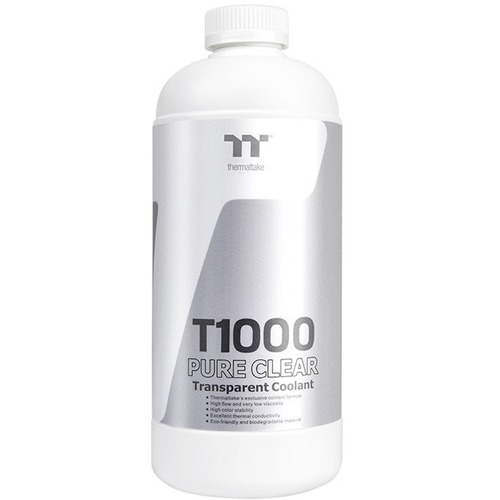 Thermaltake T1000 Coolant- Pure Clear "Formulated to Impress" Thermaltake T1000 Transparent Coolant Series is designed with TT latest formula to be used as anti-corrosion protection fluid and heat-transfer medium for PC water-cooling. With transparent colors, T1000 allows users to create unique colors by adding TT Premium concentrate. The new formula provides T1000 Coolant Series with color stability and low viscosity that enables effective flow. Thermaltake T1000 Coolant Series encourages users to create your own colors for your system! Tt LCS Certified Tt LCS Certified is a Thermaltake exclusive certification applied to only products that pass the design and hardcore enthusiasts standards that a true LCS chassis should be held to. The Tt LCS certification was created so that we at Thermaltake can designate to all power users which chassis have been tested to be best compatible with extreme liquid cooling configurations to ensure you get the best performance from the best features and fitment. Better Formula, For a Better System T1000 Coolant Series is formulated with Thermaltake''s latest formula to create ultimate performance. The new formula minimizes the possibility for precipitation to ensure clear coolant flow for your system. Other qualities such as antifreeze and corrosion protection for copper, brass, nickel, and aluminum ensures superb performance for T1000 coolant. Be Creative! Want to create your own colorful system? T1000 makes it easier to be an artist! Mix TT Premium concentrate with T1000 coolant and discover unique colors for your builds! Anti-Corrosive Solution Being non-flammable, T1000 Coolant is a ready-to-use cooling solution with at least 3 years shelf life in airtight containers, providing great performance while preventing the entire cooling system - copper, brass, nickel, and aluminum - from corrosion. Eco-Friendly T1000 Coolant Series is GREEN! Made with biodegradable materials, T1000 does not pollute the environment or bio accumulates. Thermaltake produced the T1000 Coolant Series with the environment in mind.