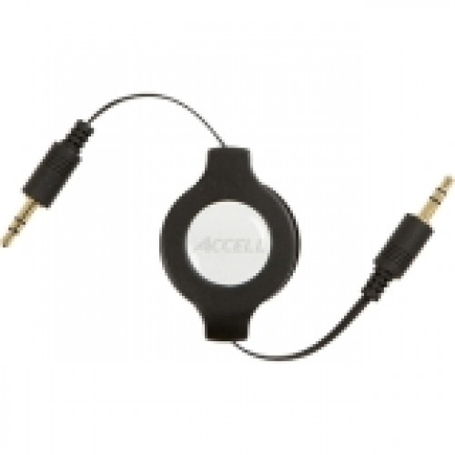 Accell Stereo Audio Retractable Cable - 4 ft Mini-phone Audio Cable for Audio Device, iPod, iPad, iPhone, Speaker, Cellular Phone, Headphone - First End: 1 x Mini-phone Male Stereo Audio - Second End: 1 x Mini-phone Male Stereo Audio - Black - RoHS Compliance