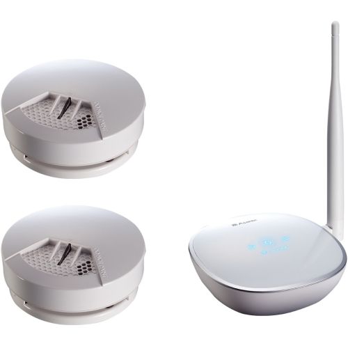 Asante Smoke Detector Kit You and your family can monitor and receive text, email or push notifications in case of a fire hazard. Like traditional alarms, when triggered, it will emit a loud alarm to notify residents. These kits are made easily accessible with a free app (available on IOS and Android platforms) with no monthly or recurring fees.