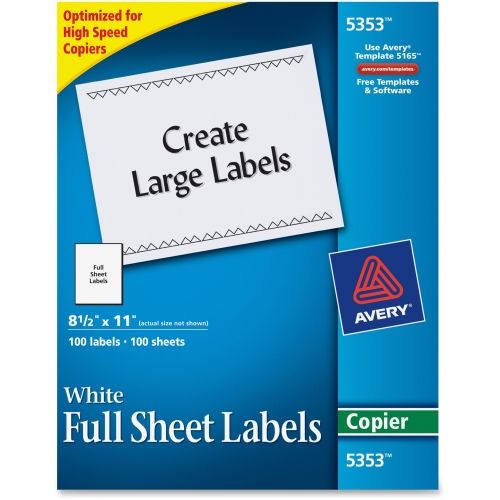 Avery ® Labels for Copiers, Permanent Adhesive, 8-1/2" x 11", 100 Labels (5353) - Permanent Adhesive - 8 1/2" Width x 11" Length - Rectangle - Laser - White - 100 / Box - FSC, TAA Compliance 5353