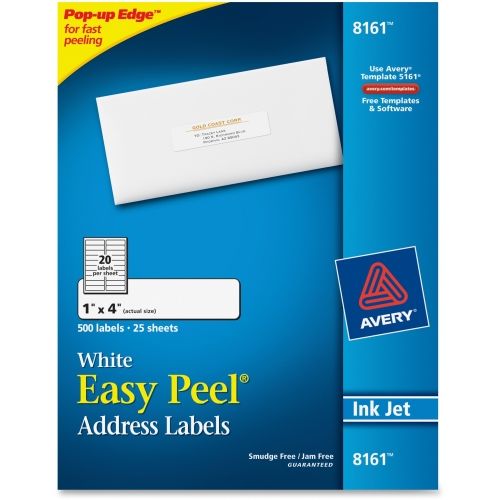 Easy Peel White Address Labels are great when you want to create professional labels quickly and easily. They''re perfect for high-volume mailing projects, labeling bottles, Ball and Mason jars, food containers, bath and beauty products, product branding, event decorations, party favors and crafts. Sure Feed technology is designed for a reliable feed through your printer, helping prevent misalignments and jams. The patented Easy Peel feature makes applying these labels a breeze. Simply bend the label sheet to expose the Pop-up Edge, peel off your label and fold the sheet back to flat. To easily customize your labels, use Avery''s free online templates and designs. Each sheet includes 20 labels that each measure 4" wide x 1" high. More from the Manufacturer