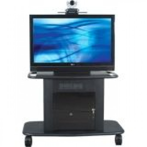 The GMP-350S is 32" tall and holds a single display up to 42". Comes standard with 10RU 19" rack mount bracket in front and rear and 6 port APC® surge protector. At 23" deep, there is ample space to accommodate larger systems. Includes universal screen mounting system and set-top camera mount (TT-1).