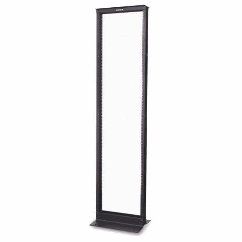 42 Unit two-post rack provides an economical, stable, and durable solution for securing patch panels, switches, cabling, and other rack-mountable networking equipment. Offers a 19" x 7'' frame. RMU markings on both sides for fast and simple equipment installation. Weight capacity is 1,000 lb. One-person assembly. 42 Unit two-post rack includes four 3/4" holes in base for mounting. Mounts to concrete floor. Rack size: 19".