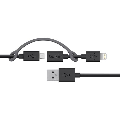 Belkin Lightning/USB Data Transfer Cable - 3 ft Lightning/USB Data Transfer Cable for iPhone, iPad, iPod - First End: 1 x Lightning Female Proprietary Connector - Second End: 1 x Female Micro USB - Black - 1 Pack