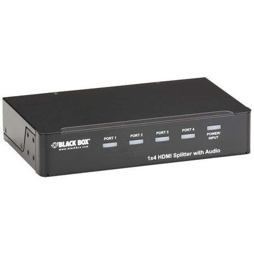 Split and distribute HDMI video plus audio from a satellite or set-top box, PC, or other HDMI source device to four digital screens.The 1 x 4 HDMI Splitter with Audio splits an HDMI source between up to four outputs simultaneously without signal loss.Simply connect the HDMI cables, power up the system, and you''re ready to duplicate a video image for multiple displays up to 16.4 feet (5 m) away. You can also cascade multiple units to expand your broadcast to additional HD screens.Providing crisp, clear video output, the splitter supports HDMI display resolutions of up to UXGA (1600 x 1200), WUXGA (1920 x 1200), or Full HD 1080p (1920 x 1080).Use the 1 x 4 HDMI Splitter with Audio to output high-definition video from a Blu-ray or DVD player, as well as multi-channel audio. It carries the best signal from source to displays, and its high bandwidth enables you to transmit large amounts of information at a very high rate of speed.
