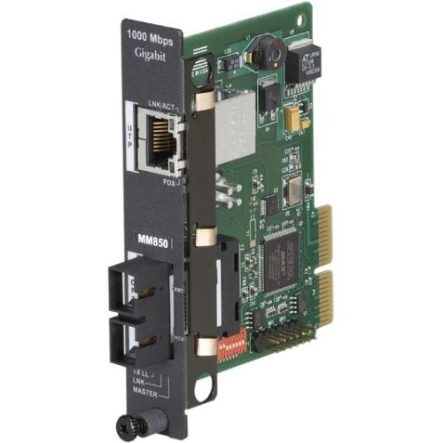 Further Details Installs in our High-Density Media Converter System II Chassis. LinkLoss™ notifies you of "silent failures" on the copper-to-fiber links. This Layer 1 module for the High-Density Media Converter System II belongs to a large family of modular media converter and communications options for your managed enterprise network. With many modules to choose from, this system can adapt to even the most demanding network configurations. The modular media converters for the High-Density Media Converter System II convert the incoming electrical signal from one cable type and then transmit it over another type. Bridging the gap between two different Ethernet types, the media converters are totally transparent to network operation, having no effect on the data being sent across the link. What''s more, all the modules are hot-swappable-you never need to power down a chassis to change a module. The High-Density Media Converter System II 1000BASE-TX to 1000BASE-SX Duplex Layer 1 Module featured here is ideal for establishing Gigabit fiber links. It provides you with blazing Gigabit throughput at distances of up to 550 meters (1640.2 ft.) over multimode fiber cable, using less-expensive short-wavelength (850 nm) optics in the receive and transmit process. The Configuration Control feature retains the latest configuration regardless of whether it was set using DIP switches or SNMP. This module has LinkLoss™, which notifies you of "silent failures" on copper-to-fiber links. LinkLoss enables you to troubleshoot network problems just by looking at the media converter''s Link LED-the link status of the fiber segment will always be reflected by the twisted-pair segment so you''re informed quickly of fiber problems. The module also features link fault pass-through (LFPT), which automatically shuts down a link if its link partner fails.