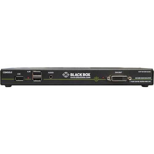 SECURE KVM DEFENDERThe Black Box Secure KVM Peripheral Defender, NIAP 3.0, DVI-I, Audio, USB, CAC is designed to prevent data leakage between secure and unsecure systems through shared peripherals connections. The Peripheral Isolator offers a reliable way to protect vulnerable peripherals shared by classified or secure networks and prevents threats from connections with unauthorized or untrusted peripheral devices. The device also safeguards critical data from accidental transfers, unauthorized access, or compromised data. This is perfect for any organization that handles sensitive or confidential data on separate computer networks. Use the Secure KVM Peripheral Defender to lock down and prevent data leakage between classified and unsecure computers through a shared peripheral device. The isolator blocks the direct connection between the host PC or laptop and a peripheral device exposed to security threats, such as a printer, projector, speaker or any other peripheral device that shares access with a classified computer or network and ensures that video, USB, and audio data flow only from the computer to the peripheral - with no access to other classified or sensitive networks. This single direction data transmission provides a complete isolation of the secure computer, preventing all kinds of intruder attempts via cyber hacking, eavesdropping or device re-tasking. Install the isolator between your peripheral and computer by connecting the video, keyboard, mouse and audio port of the computer to the isolator inputs as well as the DVI, keyboard, mouse or audio ports of your peripheral device. By doing this the computer and peripherals are completely isolated from each other. Tested and certified to NIAP Protection Profile version 3.0 USB, audio and DVI-I with best dual link DVI resolutions up to 2560x1600, DisplayPort and HDMI resolutions up to 4K (3840x2160 @30Hz). Supports balanced speaker outputs and switching Fully advanced and configurable CAC port (optional) SECURE FEATURES Isolated channels ensure that data is not leaked between secure ports and outside world Uni-directional data flow from computer to peripheral prevents eavesdropping attempts through vulnerable devices Mechanical, electrical, and optical isolation to prevent hacking and data leaks in environments where security is critical Secure EDID learning prevents unwanted and unsecure data from being transmitted through DDC lines Protected firmware keeps intruders from re-programming or reading the firmware Keyboard/internal cache wiping Chassis intrusion protection Equipped with internal anti-tamper switches and Tamper-evident seals ABOUT SECURE KVM FROM BLACK BOX NIAP PP3.0 certified Secure KVM Switches from Black Box offer a secure desktop access solution to safeguard against cyber intrusion for government/military agencies, finance, healthcare, traffic control and educational facilities alike. The Black Box NIAP PP3.0 certified Secure KVM Switches provide ultra-secure switching between up to 16 standard personal/portable computers, servers, or thin clients running operating systems such as Windows or Linux from an ergonomic and space saving workspace. BROAD SECURE KVM SWITCH PORTFOLIO FOR EVERY APPLICATION AND EVERY INDUSTRY The Secure KVM Switch range from Black Box is one of the widest in the industry. Different applications and industries have differing requirements of centralized computer access. This portfolio has a suitable solution for every configuration: KVM Switches with 2-,4-, 8- or 16- computer ports