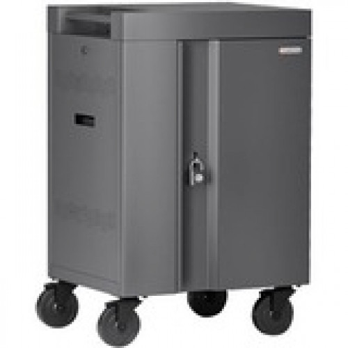 Number of Devices Supported: 24Number of Casters: 4Caster Size: 5"Locking Storage: YesApplication/Usage: Tablet, Notebook, Chromebook, StorageMaximum Screen Size Supported: 17.3"Features: Back Panel, Combination Padlock, Ergonomic, Handle, Welded, Cable Management, Removable Panel, Locking Casters, Divider, Locking System, Electronic Timer, Storage SpaceInput Voltage: 120 V ACPower Source: AC (Alternating Current)Product Color: PlatinumProduct Material: SteelHeight: 37.5"Width: 24"Depth: 21"Weight (Approximate): 96 lbPackage Contents: