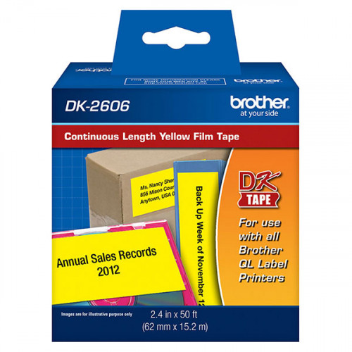Brother 62mm (2 3/7") Black on Yellow Continuous Length Film Label Tape (15m/50') (1/Pkg). Print labels that will help you organize, identify and simplify your labeling needs. There?s a complete assortment of low-cost DK Die-Cut Paper Labels and Continuous Length Paper and Film Tapes available for the Brother QL Series label printers.