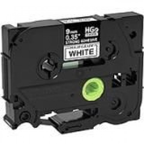 Brother HGES2215PK Black on White Extra-Strength Adhesive Label Tape - 11/32" Width x 26 1/4 ft Length - Thermal Transfer - White - 1 / Pack - TAA Compliance HGES2215PK
