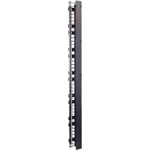 This Single-Sided Vertical Cable Management Cage is an ideal solution for adding cable management to the side of a standard EIA rack. The fingers are spaced to line up with rack units, promoting efficient routing of patch cords to patch panels and equipment from the vertical cable management cage. The dual snap on hinged cover allows easy access to cables during moves, adds and changes. All necessary hardware for mounting the vertical cable management cage is included, so there are no extra parts to order. Mounts to the side of a standard EIA rack The fingers are spaced to line up with rack units Dual snap on hinged covers Includes all hardware necessary
