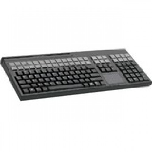 Full-sized multifunctional keyboard with enhanced 127 position key layout and magnetic card reader and touchpad Full size keyboard with QWERTY layout Enhanced US 127 position key layout Robust product design with IP 54 spill and dust resistant key field for harsh environments Plug & Play configuration for all common POS features Unique function enhancement with "CHERRY Tools" virtual programming Fully programmable keyboard with 42 relegendable keys for easy layout configuration and quick function calls Option for unlimited programmability of all keys up to 3 layers FCC provides convenient data access "Moving of Key" allows for easy key position exchange including modifier functions High performance 3-track magnetic stripe reader with freely programmable headers and terminators for each track Dual insertion for bi-directional swipe of magnetic stripe card 127 programmable keys Audible and visual indication of MSR good reads Flexible parsing and configuration of magnetic stripe data including start/stop sentinels Powerful "CHERRY Tools" configuration software allows for quick product set up and configuration Easy configuration file transfer with Windows Explorer Comprehensive UPOS support for Windows and Linux client-server architectures Remote network installation with CHERRY Tools Activator Reducing desktop footprint while ensuring easy cursor navigation Yellow status LEDs Accessory kit available to reconfigure key layout More from the Manufacturer