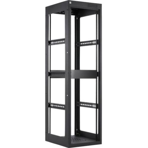 28U tall, 33" deep G1 Series rack is built with welded steel construction, extra space on the bottom of the rack for easily mounting small components, and two removable 3U blanks on top for ventilation options. Includes adjustable depth rear rack rail. Casters, floor levelers, side panels and all doors are ordered separately.