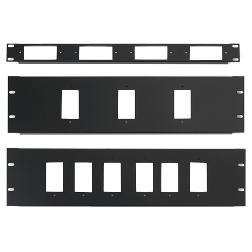 1U rack panel that features a punch-out for 4 Decora devices.