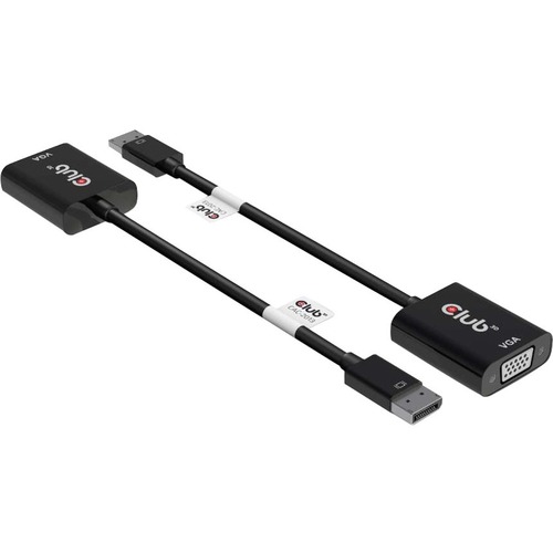 The Club 3D CAC-2013 is an active DisplayPort™ to VGA signal converter. It enables you to connect your analog VGA Televisions, Monitors or Projectors to your Desktop or Laptop with DisplayPort™ output. The adapter offers hassle free plug and play functionality, so no Driver installation needed and it is powered by the DisplayPort™ output.The DisplayPort™ interface in the adapter consists of two main lanes for DP data, AUX channel, HPD signal and power. The VGA output is compliant to VSIS standard and supports up to WUXGA RB timings. Supports resolutions up to WUXGA 1920x1200p @ 60Hz.The adapter works with AMD, Nvidia and Intel Graphic Solutions.Please use one of our Extension/Adapter cables to connect to your devices:In case you need assistance to choose the correct cable, please visit our website www.club-3d.com or feel free to mail us at support@club-3d.com and it will be our pleasure to assist you.