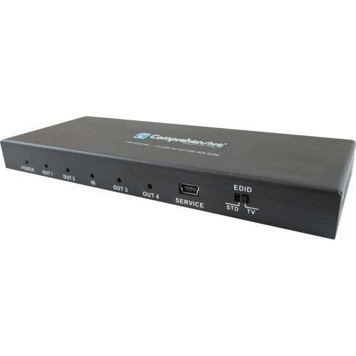 Features ? Distribute one HDMI input to four simultaneous HDMI outputs ? Supports Ultra-HD resolutions up to 4k2k@30Hz with 24bit RGB/YcbCR 4:4:4/YCBCR 4:2:2,and up to 4k2k@60Hz with 12bit YCBCR 4:4:4, high resolution VESA mode video format up to QSXGA@60Hz ? 12-bit Deep Full HD, Full 3D, HDR ? Wide Frequency Range: 25MHz - 600MHz ? Compliant with HDMI 2.0a, HDMI 1.4b (1080p@60Hz) and DVI 1.0 specification ? Integrated HDCP 1.4 and HDCP 2.2 decryption/encryption engines ? LPCM 7.1CH, Dolby TrueHD, and DTS-HD Master Audio support, and HD losless audio ? Smart EDID control ? Durable Metal Enclosure ? 2 Year Warranty Description Comprehensive''s HDMI 1x4 Splitter supports Ultra-High-Definition (UHD) 4K @ 60Hz 2160p! Our high performance HDMI 1x4 splitter is an advanced solution for splitting one HDMI input to four simultaneous HDMI outputs. The HDMI splitter also supports HDCP 2.2, 3D, 12-bit Deep Color as well as High Definition Lossless Audio. With EDID selections, users can choose between TV (downstream) or STD (fixed) settings. The splitter supports video signals up to Ultra-high-definition UHD 4K@60Hz (YUV444), and is capable of receiving and transmitting up to 18Gbps of bandwidth with no data loss. In addition, the HDMI 1x4 splitter has a slim chassis design with an enclosure made of durable metal. Comprehensive''s HDMI 1x4 splitter is perfect for huddle spaces, classrooms, collaboration, conference rooms, showroom displays, lecture halls, retail sales displays and anywhere in between. All components are RoHS Compliant and come with a 2 Year Hassle-Free Warranty.