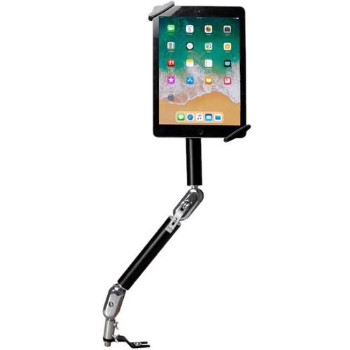 This flexible, multi-jointed tablet mount allows you to comfortably and safely display your tablet in the front seat of your car, while also allowing handheld use. Simply press the release button at the rear of the tablet security holder to disconnect from the stand. In handheld mode, the holder remains tethered to any permanent fixture inside the car with an included steel security cable. Designed for use with commercial and passenger vehicles alike, this drill-free car mount installs easily to your vehicle''s seat rail. The arm features two tilting, rotating joints for custom positioning, plus folding clasps to lock them in place, preventing unwanted movement when in motion. The slide-adjustable tablet holder tilts and rotates 360 degrees for portrait and landscape orientations. The arm mount is also equipped with an interior cable management system to permit neat tablet charging while in use.Features: Mounts to your vehicle''s seat rail with no drilling required Lock and key security protects tablet from theft Quick release holder disconnects from stand for handheld use Security cable tethers holder to car when handheld Two flexible joints on arm rotate, tilt, and lock in place for easy angle adjustment Tablet holder tilts and rotates 360 degrees for portrait and landscape orientations Unique corner-grip holder allows access to all ports, buttons and jacks Perfect for passenger or commercial vehicles, like taxis, delivery trucks, emergency vehicles, and more Interior cable routing system enables clean charging while in use Compatible with 7-14 inch tablets, including iPad Pro 12.9, iPad mini, iPad Air, Surface Pro 4, Galaxy Tab S3, and more Package contents:(1) Car mount(1) Tablet holder(1) Security cable(2) Holder keys(2) Cable keys(1) Set of mounting hardware