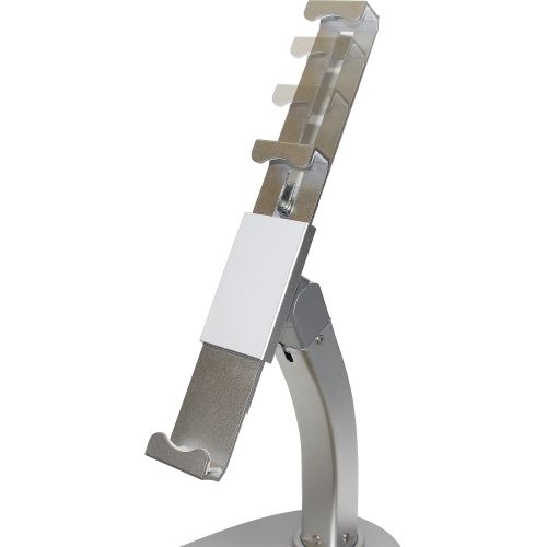 Functional design meets top-notch security with CTA Digital''s Universal Dual Security Kiosk with Locking Holder and Anti-Theft Cable for 7-13 Inch Tablets. Perfect for the classroom, conference room, or retail point of sale, this sleek, compact stand gives your tablet true anti-theft protection without compromising on utility. A lock and key mechanism secures your tablet in place for top-notch anti-theft protection, while a galvanized steel cable attaches to the stand base for an optional additional measure of security. The tablet holder rotates a full 360 degrees to accommodate portrait or landscape orientations. The neck also rotates 360 degrees at the stand base, and includes a tilting joint at the tablet holder for further angle adjustment. Also included are a stylus and tether with a built-in holder on the base, plus charge cable routing capability through the stand neck. Specifications: Holder range: 7.5 - 14.375 inches Holder depth: 0.5 inches Dimensions: 10.25" x 8"" x 14.5" Weight: 3.38 pounds Cable length: 87 inchesPackage includes:(1) Security kiosk stand(1) Anti-theft cable(1) Set of mounting hardware(1) Set of adhesive silicone pads(1) Stylus(2) Holder keys(2) Anti-theft cable keys
