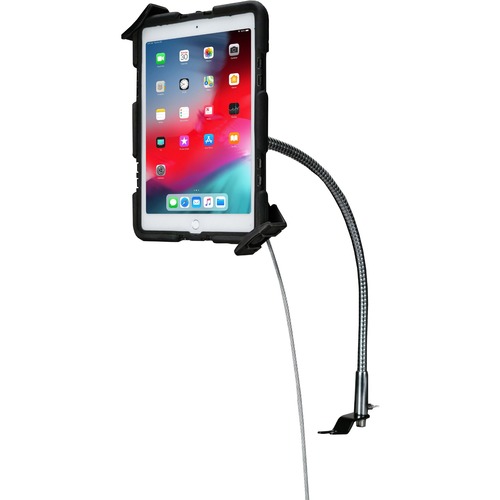 This flexible security mount safely displays your tablet at any angle in the front seat of your car, while also allowing handheld use. Simply press the release button at the rear of the tablet security holder to disconnect from the stand. In handheld mode, the holder remains tethered to any permanent fixture inside the car with an included steel security cable. Designed for use with commercial and passenger vehicles alike, this drill-free car mount installs easily to your vehicle''s seat rail. The flexible gooseneck can be repositioned to support your tablet at any angle while still providing enough rigidity to withstand stops, starts, and turns. The slide-adjustable tablet holder tilts and rotates 360 degrees for portrait and landscape orientations. Features: Mounts to your vehicle''s seat rail with no drilling required Lock and key security protects tablet from theft Quick release holder disconnects from gooseneck for handheld use Holder stays tethered to car with included steel security cable Flexible gooseneck can be repositioned for easy angle adjustment Tablet holder tilts and rotates 360 degrees for portrait and landscape orientations Unique corner-grip holder allows access to all ports, buttons and jacks Perfect for passenger or commercial vehicles, like taxis, delivery trucks, emergency vehicles, and more Compatible with 7-14 inch tablets, including iPad Pro 12.9, iPad mini, iPad Air, Surface Pro 4, Galaxy Tab S3, and more Package contents: (1) Car mount (1) Tablet holder (1) Security cable (2) Holder keys (2) Cable keys (1) Set of mounting hardware