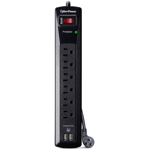 The CyberPower Professional Series CSP604U Surge Suppressor is ideal for Home/Office protection with 1200 joules, 6 outlets, 2 USB 2.1 Amp charging ports, and a 6 FT cord. The surge suppressor is ideal for protecting personal computers, phones/fax/modems, printers, stereos, and other electronics. It 2.1 Amp USB charging ports are perfect for keeping tablets, smart phones, and other rechargeable electronics ready to use. The CSP604U features six (6) outlets, MOV technology to guard the surge suppressor and connected electronics against line abnormalities and lightning surges, while EMI/RFI filters block unwanted line noise. The 4 FT power cord includes a right angle plug with a 45° off-set for convenient installation in the tightest of environments. A Limited-Lifetime Warranty ensures that this surge suppressor has passed our highest quality standards in design, assembly, material or workmanship and further protection is offered by a $50,000 Connected Equipment Guarantee.