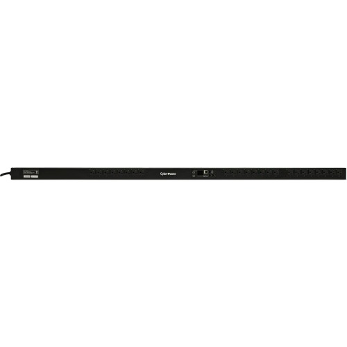 Streamline capacity planning and power management with the CyberPower PDU81101 switched metered-by-outlet PDU. Ideal for data centers and network closets, this unit provides outlet-level power monitoring in real time, along with individual outlet control for remote reboots, load shedding, controlled power-cycling and more. The PDU81101 supports inputs between 100-120V and includes eight (24) NEMA 5-20R outlets. Other features include a rack mount design (0U), built-in web interface (RJ-45 ethernet connection), interactive digital display and power event notifications. The CyberPower PDU81101 is protected by a three-year limited warranty. Power DistributionDelivers AC power to servers, equipment, and connected devices via a power distribution unit. Switch-Free DesignSafeguards against accidental power shut down. Switchable OutletsProvides local and remote control for individual and multiple outlets. Local control: turn on/turn off outlets and disable unused outlets. Remote control: restart outlets and devices, turn on/turn off, schedule power on/off sequencing, and disable unused outlets. Per Outlet Power MeteringProvides information on the amount of power being drawn from each outlet, each circuit and the PDU as a whole. CyberPower Management ConsoleA hardware interface built into Monitored and Switched PDUs. Its functionality includes the ability to switch PDU outlets on and off, reboot connected equipment locally or remotely, schedule power cycling of attached equipment, and perform other tasks, such as load monitoring and event logging Remote and Local MonitoringEnables offsite and onsite tracking of PDU vitals; provides outlet control for individual and networked clients. Automatic Event NotificationsProvide immediate updates about power events via email, SMS text, or SNMP traps. Upgradeable FirmwareDownloadable improvements (firmware updates) to programs that run the PDU. Digital DisplayProvides easy-to-read information about amperage, voltage, KW, IP address, and other PDU information. Network-Grade Plugs and OutletsHighly durable construction ensures the efficient distribution of power in demanding IT or industrial environments to servers, equipment, and connected devices. Long Input Power CordReaches distant power sources, allowing the PDU to be placed where it''s needed. Cord Retention TraySecures power cords, keeping them organized and accessible. Helps cords stay plugged in. Durable Metal HousingProtects internal components and resists damage from impact or abrasions within challenging industrial environments. Also extends the life of the product. Three-Year Limited WarrantyCovers defects in materials and workmanship in the product under normal use and conditions within three years of the purchase date. See warranty for details. What''s In The Box PDU, 2 Mounting Brackets, 6 M4x5 Screws, 6 M5x12 Screws/Washers, 6 M3x6 screws, Cord Retention Tray, Cable Ties, RJ45/DB9 Cable, User''s Manual Registration and Download Cards