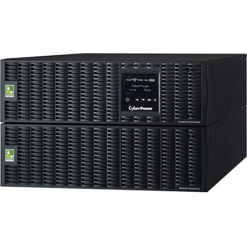 The CyberPower Smart App Online OL6KRT3UHW is a 6U rack/tower UPS with double-conversion topology and maintenance bypass switch. It provides sine wave output to mission-critical applications and equipment requiring seamless power protection. Generator-compatible, the OL6KRT3UHW delivers consistent 200-240V AC power with zero transfer time. Auto-bypass ensures connected equipment continues to operate seamlessly when an overload or internal fault is detected. The maintenance bypass switch allows for the UPS power module to be hot-swapped for service or replacement without cutting power to the connected equipment. The OL6KRT3UHW features an extendable LCD control panel (with optional cable), Smart Battery Management charging design, Fast Charge Technology, and the energy-saving GreenPower UPS™ ECO Mode. This model can use the BP240V30ART3U Extended Battery Module for expanded runtime and faster restoration of full backup power. The OL6KRT3UHW comes with a three-year warranty (including batteries) and a $300,000 Connected Equipment Guarantee. Gives you a high level of protection by isolating the equipment from raw utility power 6000 VA load capacity provides sufficient backup during power failures 5400 W load capacity - backup power for your valuable electronics Keep your sensitive devices powered with a backup of up to 5 minute at full load