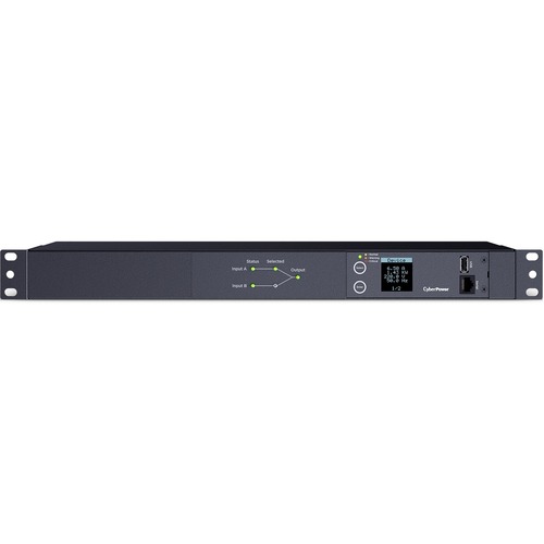 Ensure continued operation of critical devices with the CyberPower PDU24004 Metered ATS PDU. Ideal for data centers and network closets, this unit provides power redundancy to single-corded connected equipment. If power for the primary source exceeds the lower or upper thresholds, or if power fails, the PDU will switch to the secondary power source to ensure continuous operation. The PDU will switch back to the primary power source when incoming power becomes stable. The PDU24004 supports inputs between 200-240V and includes (12) IEC C13 outlets. Dual IEC C14 power cords are plugged into separate power sources (A and B), and information about each power source is provided via LED indicator lights on the front of the unit. Other features include an LCD with selectable background color, ugradeable firmware, and network-grade plugs and outlets. The CyberPower PDU24004 is protected by a three-year limited warranty.