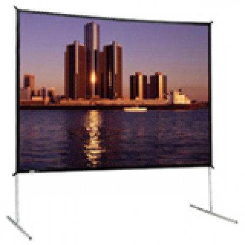 Fast-Fold Deluxe frame and legs are constructed of sturdy 1-1/4" aluminum tubing and feature easy release latches for simple, quick set up and tear down of the screen. Fast-Fold Deluxe with Da-Mat fabric is standard with a foldable black backed material. This exclusive feature allows for the portability of a Fast-Fold screen with the superior image quality and opacity of a black backed material.