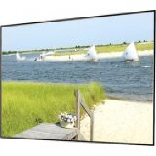 Clarion permanently tensioned projection screen. Viewing surface is flat, for perfect picture quality. Viewing surface is stretched tightly behind a beveled black aluminum frame. New design for quick assembly and flatter viewing surface--no snaps! Z-Clip wall mounting brackets included to simplify installation.