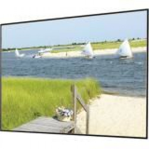 Clarion permanently tensioned projection screen. Viewing surface is flat, for perfect picture quality. Viewing surface is stretched tightly behind a beveled black aluminum frame. New design for quick assembly and flatter viewing surface--no snaps! Z-Clip wall mounting brackets included to simplify installation.