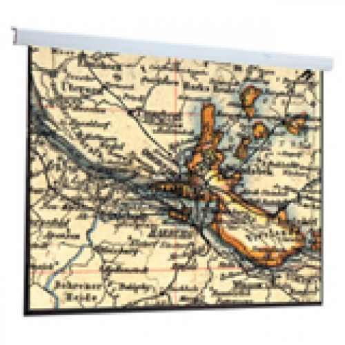 Targa electric projection screen. Ideal for auditoriums and lecture halls, hospitals, hotels, churches, boardrooms and conference rooms. The motor is mounted inside the roller, for a trim balanced appearance. Pentagonal steel case is scratch-resistant white polyester finish with matching endcaps.