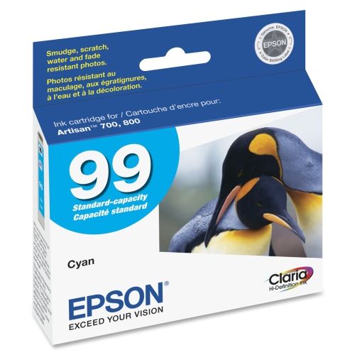 Ink cartridge is designed for use with Epson Artisan 700, 710, 725, 730, 800, 810, 835 and 837 printers. Claria Hi-Definition Ink delivers long-lasting photos that are smudge-resistant, scratch-resistant, water-resistant and fade-resistant. It is the ultimate combination of photo quality and longevity - better quality than the lab.