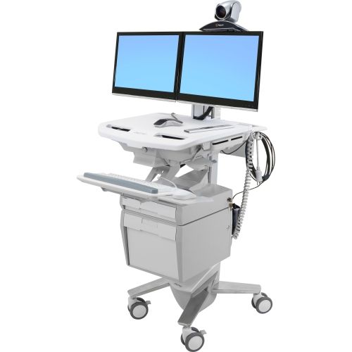 Ergotron StyleView Telepresence Cart, Dual Monitor - 44 lb Capacity - 4 Casters - Aluminum, Plastic, Zinc Plated Steel - White, Gray, Polished Aluminum