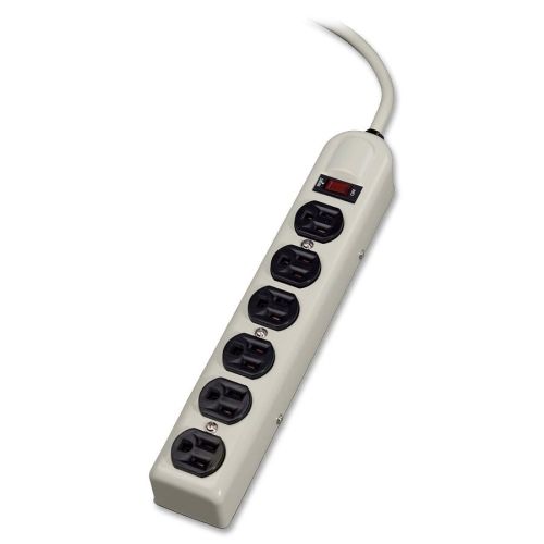 Six-outlet power strip features 15 amp circuit breakers, 6'' power cord with three-prong grounded plug, six outlets, and lighted on/off switch. Durable construction includes metal housing. UL and cUL approved.