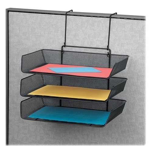 Organize papers, files and more with these Triple Side-Loading Trays that save desk space by hanging from cubicle wall. Each tray offers a 2" capacity. Mesh and wire construction gives this partition addition a professional and modern look. Mesh triple file pocket measures 17-7/8" in height for a partition mount and 11-7/8" in height for wall mount. Trays are 100 percent recyclable.