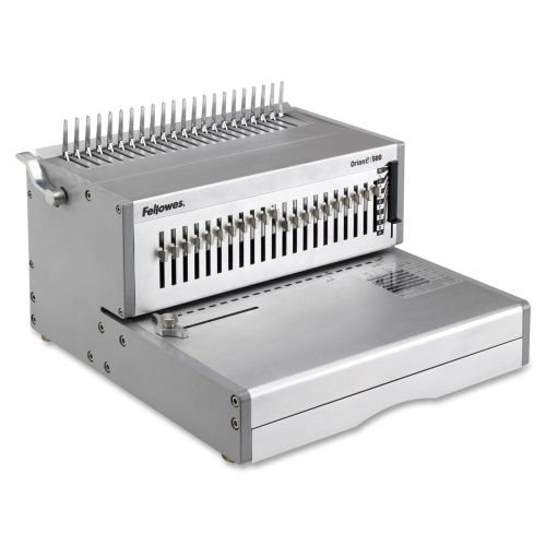 Heavy-duty, commercial binding machine is ideally suited for high-volume use. Effortless foot pedal operation delivers maximum ease of use. Binding machines electrically punches up to 30 sheets at a time and binds documents as large as 500 sheets with a 2" comb. Design includes an adjustable punch depth for extra-large documents. Adjustable edge guide easily centers documents. 21 releasable dies can handle a variety of document sizes up to 12" wide. Extra-large chip tray has convenient front access.