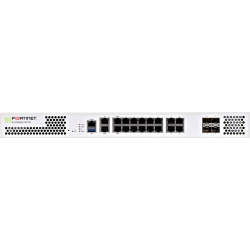 Fortinet FortiGate 201E Network Security/Firewall Appliance - 18 Port - 1000Base-T, 1000Base-X Gigabit Ethernet - AES (128-bit), AES (256-bit), SHA-256 - USB - 17 x RJ-45 - 4 - SFP - 4 x SFP - Manageable - 1U - Rack-mountable