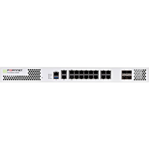 The FortiGate 200E series delivers next generation firewall capabilities for mid-sized to large enterprises, with the flexibility to be deployed at the campus or enterprise branch. Protect against cyber threats with security processor powered high performance, security efficacy and deep visibility. Security Protects against known exploits, malware and malicious websites using continuous threat intelligence provided by FortiGuard Labs security services Identify thousands of applications including cloud applications for deep inspection into network traffic Detects unknown attacks using dynamic analysis and provides automated mitigation to stop targeted attacks Performance Delivers industry''s best threat protection performance and ultra-low latency using purpose-built security processor (SPU) technology Provides industry-eading performance and protection for SSL encrypted traffic Certification Independently tested and validated best security effectiveness and performance Received unparalleled third-party certifications from NSS Labs, ICSA, Virus Bulletin and AV Comparatives Networking Delivers an extensive routing, switching, wireless controller and high performance IPsec VPN capabilities to consolidate networking and security functionality Enables flexible deployment such as Next Generation Firewall and Secure SD-WAN Management Single Pane of Glass with Network Operations Center (NOC) view provides 360° visibility to identify issues quickly and intuitively Predefined compliance checklist analyzes the deployment and highlights best practices to improve overall security posture Security Fabric Enables Fortinet and Fabric-ready partners'' products to collaboratively integrate and provide end-to-end security across the entire attack surface Automatically builds Network Topology visualizations which discover IoT devices and provide complete visibility into Fortinet and Fabric-ready partner products