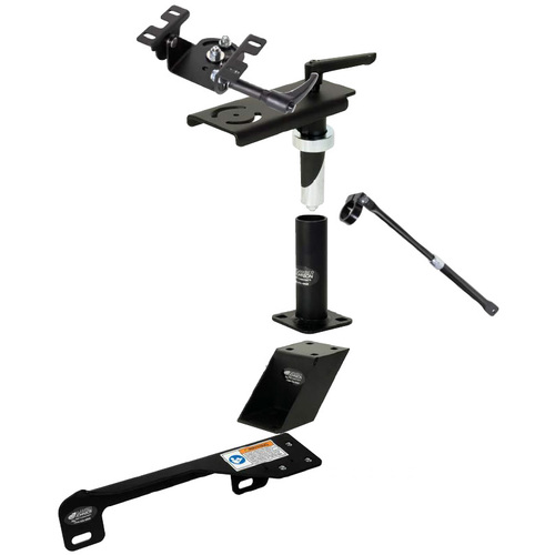 Solution Components:1. Vehicle Base (Item No. 7160-0114) Vehicle Base is a no-drill solution and attaches to the passenger side seat studs. Designed using heavy gauge steel for long-term durability.2. Off set Universal Mounting Step (Item No. DS-STEP) The Off set Universal Mounting Step moves the mounting system away from passenger leg space towards the driver.3. Lower Tube (Item No. DS-LOWER-5) The Lower Tube provides vertical clearance over the center console or the seat.4. Upper Pole (Item No. DS-UPPER-M5) Convenient lever controls left/right rotational adjustments as well as height adjustments. Set-collar can be used to stabilize height while rotational adjustments are made.5. Motion Attachment (Item No. 7160-0419) Motion Attachment has tilt capabilities up to 30 degrees forward/30 degrees backward and can swivel up to 60 degrees right/60 degrees left.6. Support Brace (Item No. 7160-0230) Support Brace provides additional mount system support in rugged driving conditions and increases mounting system rigidity