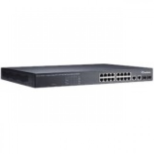 The GV-POE1601 is a 16-port 10/100BaseTX with RJ-45 Connectors, PoE+ plus 2-port Gigabit Copper/SFP Combo Uplink Port Rack-mount Web Smart PoE Switch. The switch supports IEEE 802.3at Power over Ethernet standard, up to 30 W per port and maximum 250 W power consumption per system, and no special network cable is required for connecting your powered devices (PD), such as IP cameras. The switch also provides exceptionally smart Web management features, such as VLAN, QoS, RSTP, IGMP Snooping, LACP, Port Security, etc. The switch is designed for medium or large network environment to strengthen its network connection and efficiency. It also gives you the option of installing it in a 19" cabinet with a rack-mount kit or underneath a desk.