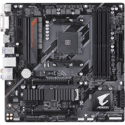 Aorus Ultra Durable B450 AORUS M Desktop Motherboard - AMD Chipset - Socket AM4 - 64 GB DDR4 SDRAM Maximum RAM - UDIMM, DIMM - 4 x Memory Slots - Gigabit Ethernet - 6 x USB 3.1 Port - HDMI - DVI - 6 x SATA Interfaces