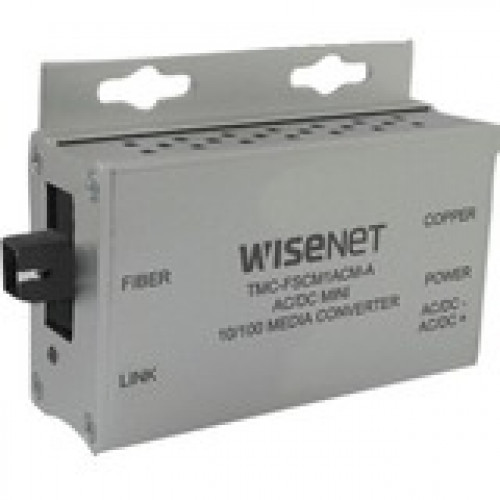 Wisenet TMC-F Transceiver/Media Converter - 1 x Network (RJ-45) - 1 x ST Ports - DuplexST Port - Multi-mode - Fast Ethernet - 10/100Base-TX, 100Base-FX - Rack-mountable, Wall Mountable, Standalone