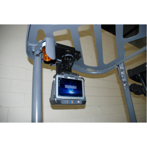 Forklift fixed overhead mounting package for convertible laptop or tablet Includes universal CM007855 mount to fit many overhead forklift applications Includes C-MD-206 motion device Used to mount Havis, inc. tablet mounts or other products with VESA 75 hole pattern Tablet adaptor plate with flanges can be flipped around for improved positioning options Includes hole pattern for mounting ds-pan 200 Series docks Accepts optional CM007856 keyboard adaptor Universal design for multiple positioning and different computer mount options Hang down design provides less stress on the brackets and is more versatile than pillar mounts Positions the computer in the upper / out of the way corner Allows unobstructed viewing for driving and loading pallets Provides clearance for lift controls Ergonomic access to computer Tilt for preferred computer viewing Swivel for preferred computer viewing and improved driving visibility Swivel so computer can be used when standing next to forklift