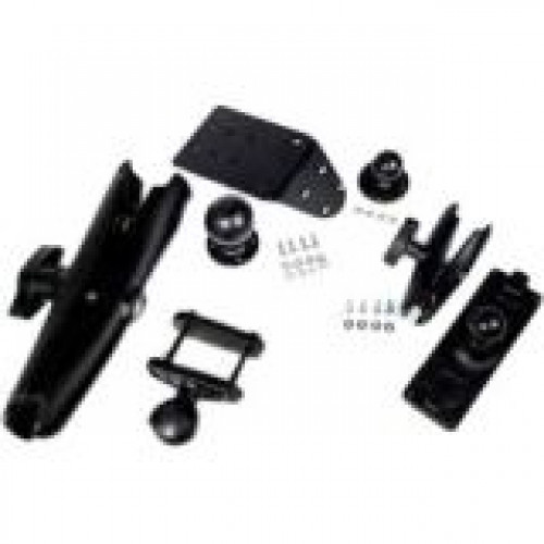 RAM mount kit, flat clamp base, long arm 330mm (13"), ball for vehicle dock rear, and keyboard mount for 9000160KEYBRD. The clamp base typically attaches directly to the roof support arm of most fork lift vehicles without the need for additional mounting hardware.