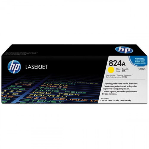 HP 824A (CB382A) Color LaserJet CM6030 MFP, CM6040 MFP, CP6015 Yellow Original LaserJet Toner Cartridge (21,000 Yield). Expect quality, and get it time after time, from Original HP toner cartridges. Avoid the reprints, wasted supplies, and costly delays that can occur with remanufactured cartridges.