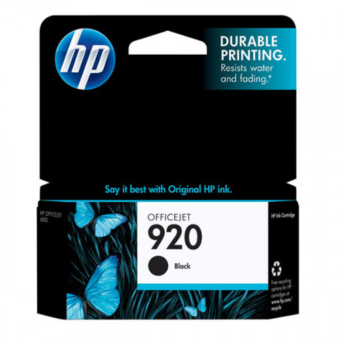 HP 920 (CD971AN) Black Original Ink Cartridge (420 Yield). Create lab-quality color photos and everyday documents with Original HP ink cartridges -- designed with fraud protection and smart low-ink alerts to deliver worry-free performance and consistent results you can count on.
