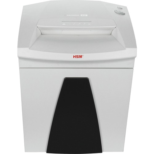 Strip-cut paper shredder features optimized cutting device technology that destroys 28 to 30 sheets of paper, creating 38 strip-cut particles per page. It also shreds staples, paper clips, credit/store cards and CDs/DVDs. High-quality materials provide safety and durability. Anti-Jam Technology prevents jams if machine is overloaded. Continuous-duty operation ensures continual shredding with no downtime. Energy Management Control System EcoSmart allows particularly low power consumption of 0.1 watt in standby mode. Quiet operation minimizes noise development in the workplace. Cutting rollers are made of hardened solid steel. With a Comprehensive Safety System, shredder is UL Approved and CE-Certified. For high user safety, the folding safety element prevents unintentional intake. Design also includes a multifunction element for intuitive operation; light barrier for automatic start/stop; and inspection window to monitor filling level. More from the Manufacturer