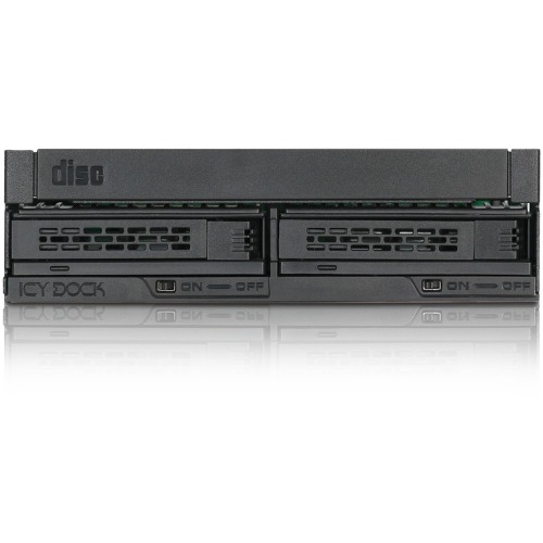 The ICY DOCK ExpressCage MB732SPO-B lets you use your 5.25" bay to its fullest extent by installing two hot-swappable 2.5" HDD / SSD bays, and a CD-ROM/DVD/Blu-Ray disc reader bay. To maximize compatibility, the disc reader bay can be used with either a slim (12.7mm) or ultra-slim (9.5mm) disc reader using an included multi-purpose spacer. Additionally, the innovative tray design expands compatibility to all 2.5" HDDs and SSDs, up to 15mm in height, and uses built-in pegs in place of screws for easy 100% tool-less installation. Full-metal chassis with plenty of ventilation holes keeps your drives safe from environmental damage and overheating issues. The ExpressCage MB732SPO-B is perfect in systems needing to maximize their space efficiency; Small-form factor systems, Home-Theater PCs with media collections on drives and discs, and photo/video editors working with traditionally stored files and files stored on DVDs and Blu-Rays. Maximize Space Efficiency The ExpressCage MB732SPO-B is designed to unlock the full potential of the external 5.25" bay. By combining a slim/ultra-slim CD-ROM/DVD/Blu-Ray disc reader bay and 2x hot-swappable 2.5" HDD/SSD bays, the MB732SPO-B provides a dense unified solution for managing optical disks, hard drives, and SSDs for small-form-factor and home-theater PC (HTPC) systems, without compromising storage or expandability. Multifunctional Detachable ODD Faceplate The MB732SPO-B comes with a multifunctional detachable faceplate for the CD-ROM/DVD/Blu-Ray ODD slot. When no disc reader is installed, or when using an ultra-slim (9.5mm) disc reader, the faceplate becomes a protective front dust cover, protecting your internal components from overheating due to accumulated dust blocking ventilation holes. The faceplate can be easily hidden and stored inside of the enclosure with a specially design housing spot for the faceplate. To install a slim ODD (12.7mm height), simply insert your slim ODD into the MB732SPO-B and secure the device with included screws. The Multifunctional ODD bay faceplate can also be used as a spacer when a thinner ultra slim ODD (9.5mm height) is installed. Packed with Features Each of MB732SPO-B''s drive bays has its own indicator light to notify you of any drive activity, preventing drive damage by alerting you when your drive is in use. A blue LED is easily visible, without casting too much light and straining your eyes. Each drive bay has its own power switch, saving power when not in use. Because you don''t have to physically remove the drive, using the power switch protects the internal connectors from wear and erosion of their protective coatings. The ExpressCage MB732SPO-B supports both 7-pin SATA and 15-pin SATA power cables with locking latches, so you''ll never need to worry about cables unintentionally disconnecting from your enclosure. Once these cables are connected, they''ll lock into place and stay that way. Innovative ExpressTray Design The ExpressCage MB732SPO-B uses an intelligently engineered tray design that requires no tools or screws. Built-in pegs insert into the screw holes of your drive to provide a secure hold in seconds, saving you time over traditional trays needing a screwdriver. When additional security is required, such as when transporting drives outside of the enclosure, the included screws can be used to further secure drives and prevent them from falling out in transit.