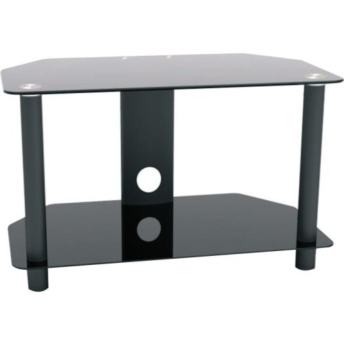 The model 05448 Constructed with steel column and legs, this two shelves TV stand offers a clean look that is complemented by 100% secure mail-order shipping packaging and extra low price. The stand features thick tempered glass and a powder coated steel frame for durability and lasting beauty. High-quality construction and open architecture maximize airflow and provide the enhanced strength needed to handle even the largest televisions. A cable management system is located at the rear of the stand to hide those unsightly cables from view. Integrated TV mount supports flat panel TVs up to 32'''' with a maximum weight of 40kgs/88lbs. What''s more, this No Tools Assembly design assembles in minutes with no tools required